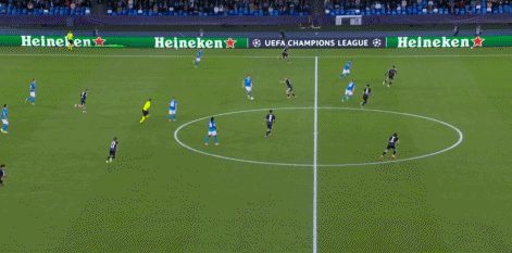 第45分鐘,那不勒斯反擊,麥克托米奈斜傳沒傳好